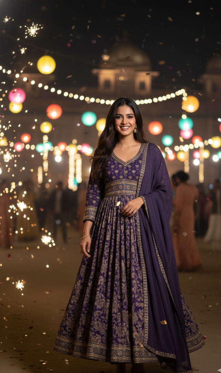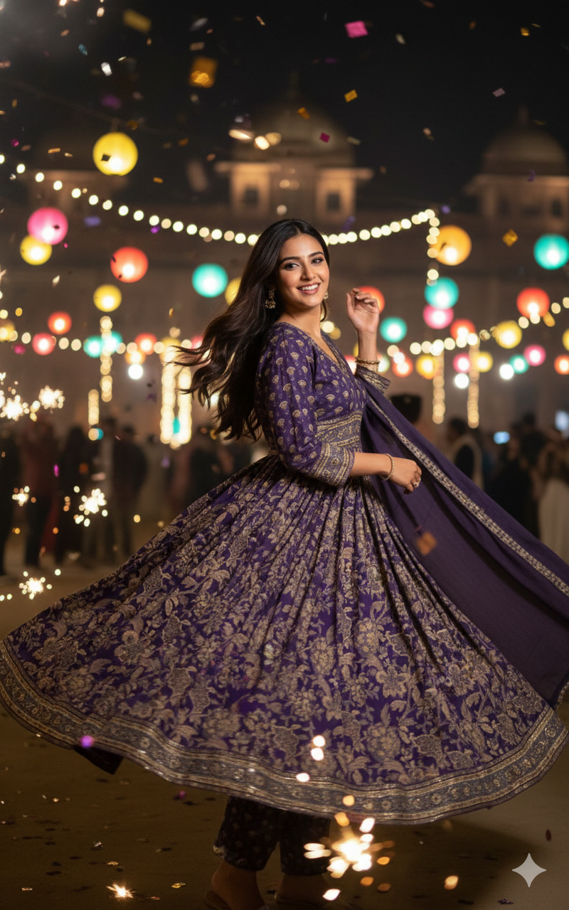 Purple Cotton alia cut anarkali
