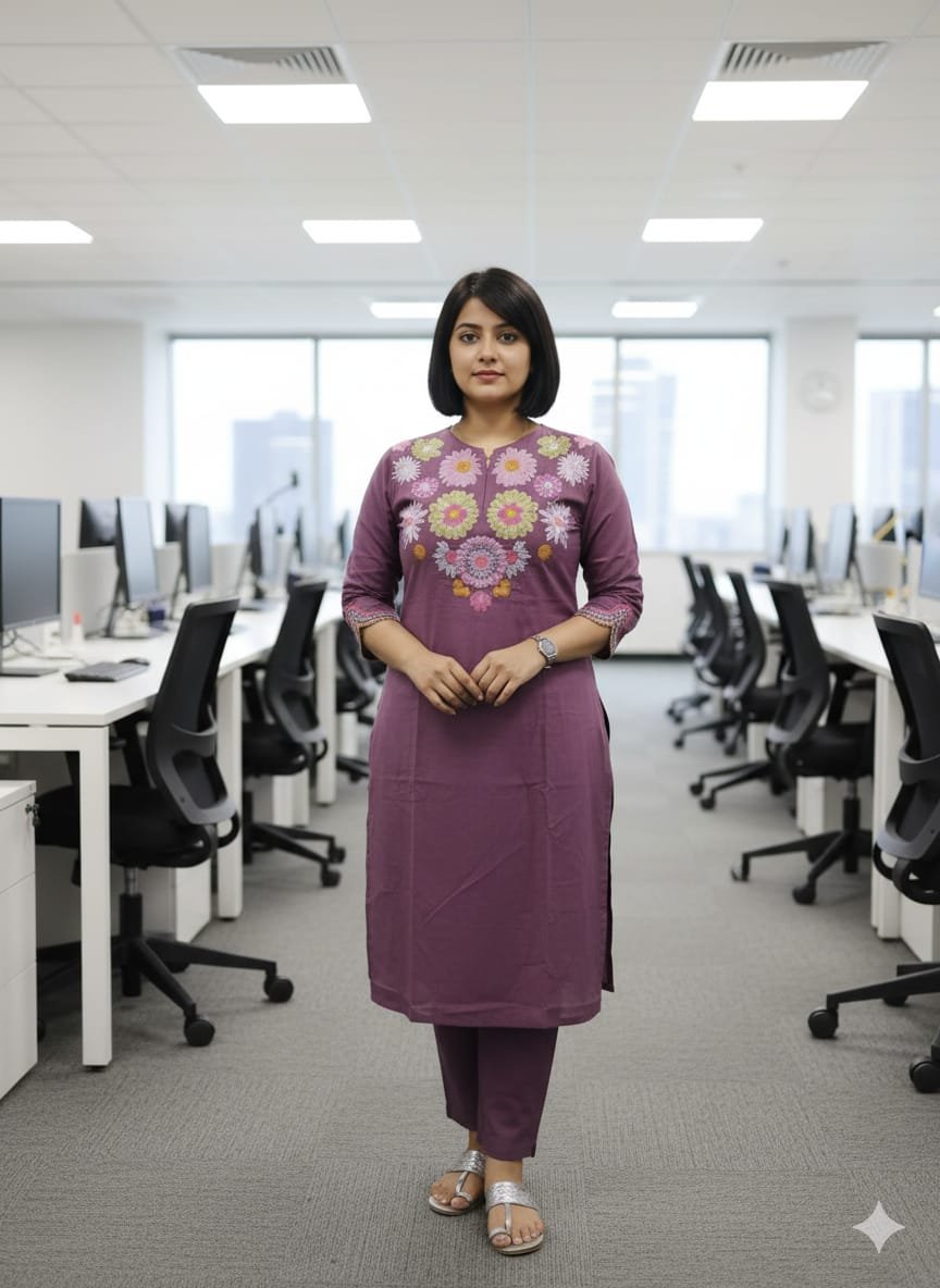 & Free ShippingSoft Cotton long Coord set with beautiful thread work all over the yoke and sleeves.