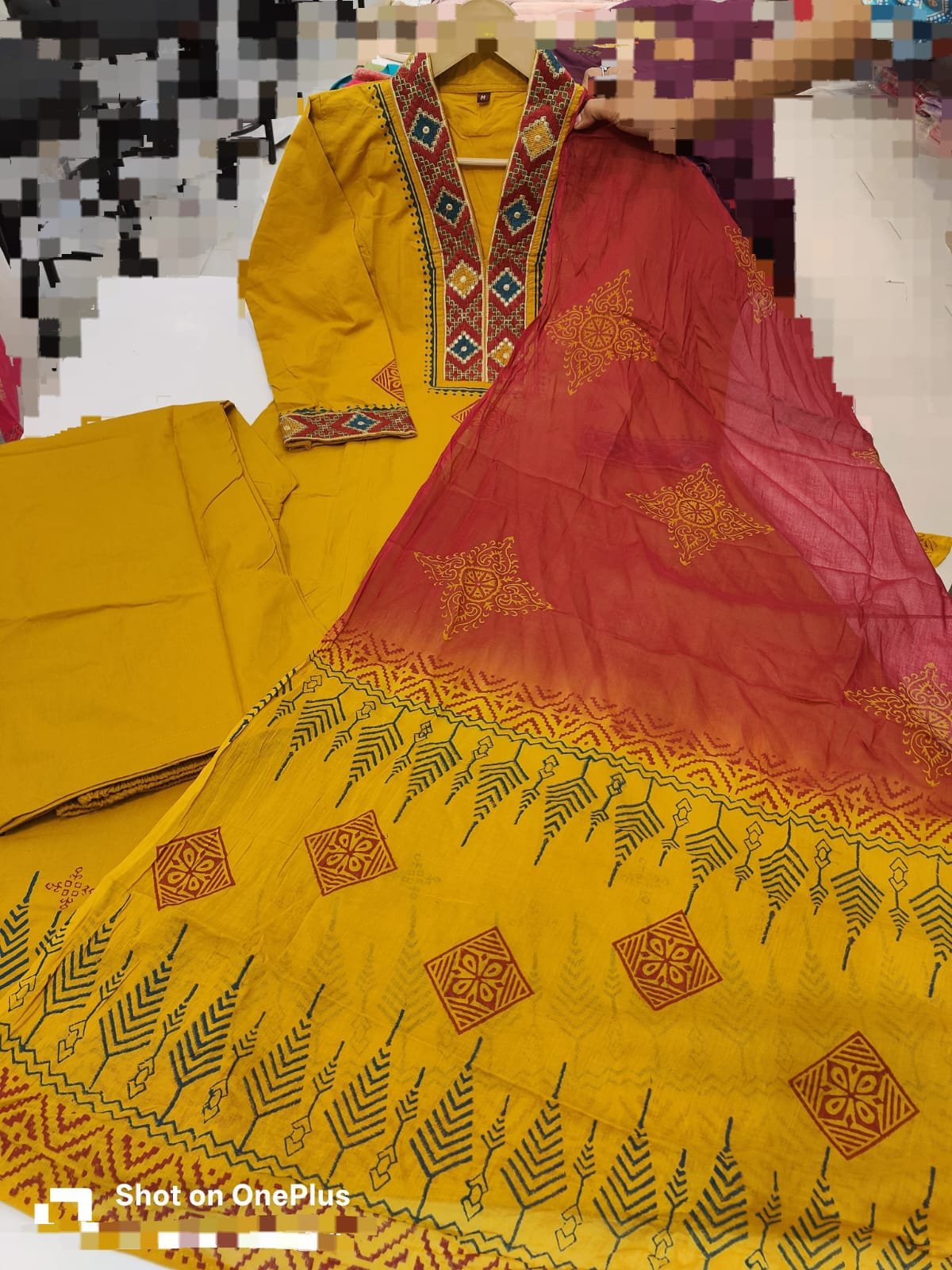 PAIRED WITH *COTTON* PLAZZO AND *MUL COTTON* SHADED BLOCK PRINTED DUPATTA